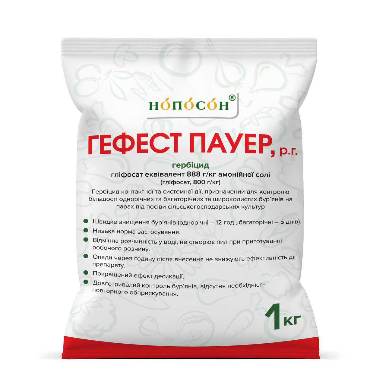 Гербіцид Гефест Пауер 1кг (амонієва сіль гліфосату 800г/кг), амонієвий гліфосат